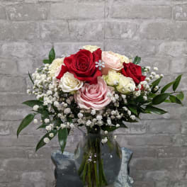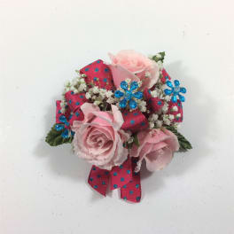 Price: $59.99 W27 Pink spray rose wristlet with designer keepsake bracelet Product Tags: Next-day Delivery